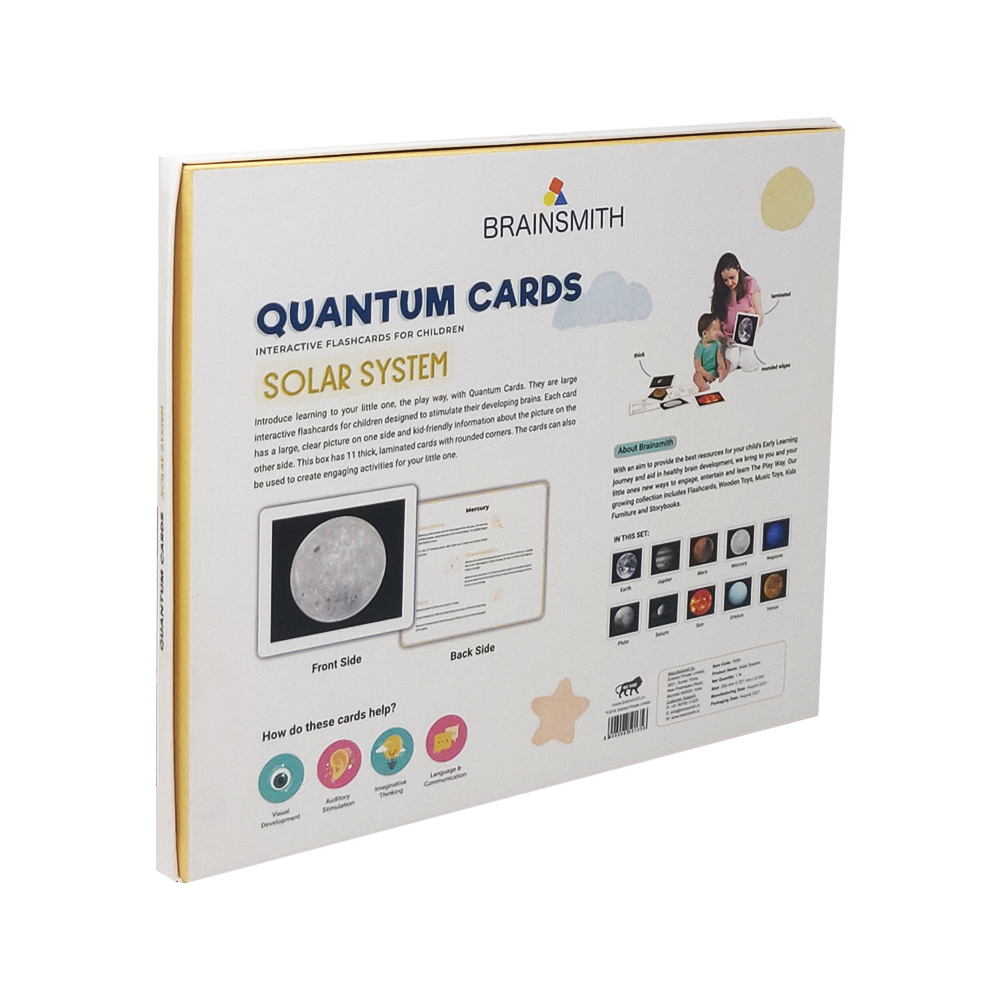 Stimulate your baby's brain cell connections and boost brain development with Brainsmith Quantum Cards. These flashcards for kids are thick and durable and come in a sturdy box to store. Using these cards correctly and regularly with toddlers and preschool kids will build recognition skills and strong memory and create a solid foundation in early childhood learning.